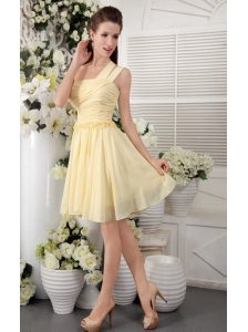 Light Yellow Empire One Shoulder Short Chiffon Pleat Bridesmaid Dress