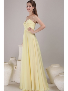 Yellow Empire Sweetheart Neck Floor-length Chiffon Ruch Bridesmaid Dress
