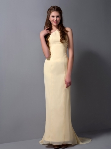 Cheap Light Yellow Halter Top Bridesmaid Dress with Brush Train