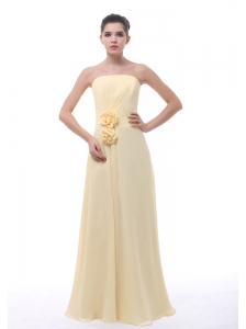 Light Yellow Column / Sheath Strapless Floor-length Chiffon Ruch Bridesmaid Dress