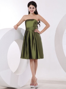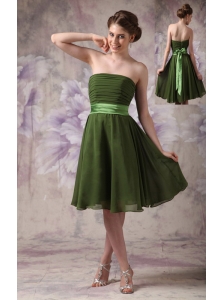 Olive Green Empire Strapless Bridesmaid Dress Chiffon Knee-length