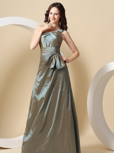 Olive Green Sash and One Shoulder For Bridesmaid Dress Custom Made