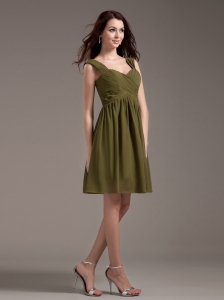 Straps Knee-length Olive Green Chiffon 2013 Bridemaid Dress