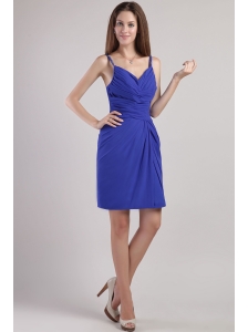 Royal Blue Column / Sheath Straps Mini-length Chiffon Beading Bridesmaid Dress