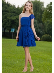 Royal Blue A-line One Shoulder Mini-length Chiffon Bridesmaid Dress