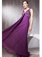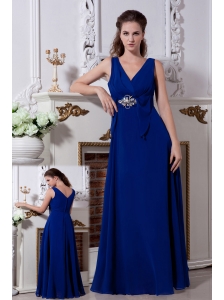 Royal Blue Empire V-neck Beading Bridesmaid Dress Floor-length Chiffon
