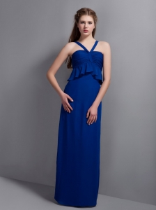 Popular Royal Blue Empire Straps Bridesmaid Dress Chiffon Floor-length
