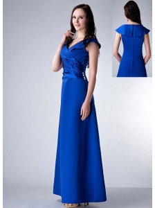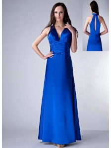 Customize Royal Blue Column V-neck Bridesmaid Dress Satin Ruch Ankle-length