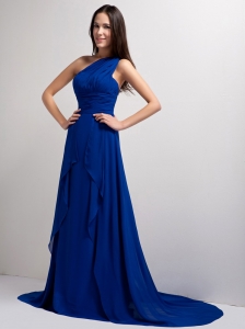 Royal Blue Mother Of The Bride Dress With One Shoulder Ankle-length Chiffon