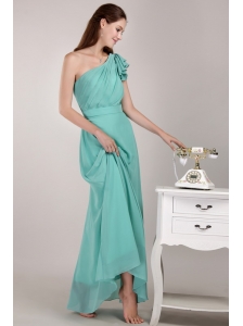 Turquoise Column / Sheath One Shoulder Floor-length Chiffon Ruch Bridesmaid Dress