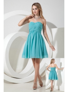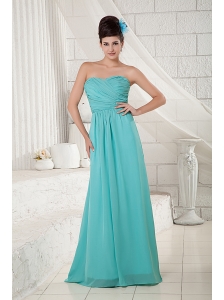 Pretty Turquoise Bridesmaid Dress Empire Sweetheart Chiffon Ruch Brush Train