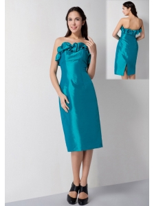 Wonderful Teal Column Strapless Bridesmaid Dress Tea-length Taffeta