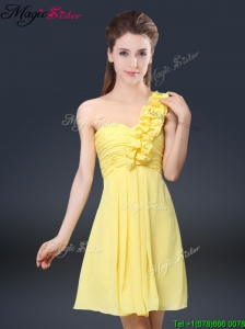 One Shoulder Yellow Empire Chiffon Rhinestone Decorate Prom Dress
