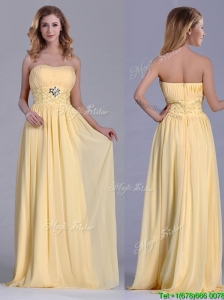 Modern Light Yellow Empire Sweetheart Brideamaid Dress Brush Train Taffeta Pleats