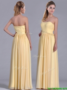 New Style Yellow Empire Long Bridesmaid Dress with Beaded Bodice
