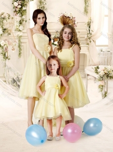 Affordable Knee Length Tulle Bridesmaid Dress with Handle Made Flower and Sashes