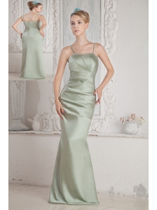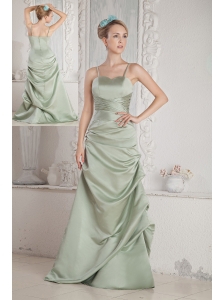 Green Column Straps Beading Bridesmaid Dress Brush Train Satin