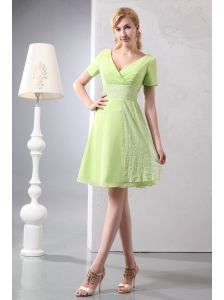 Cheap Yellow Green V-neck Mini-length Bridesmaid Dress Empire Chiffon and Sequin