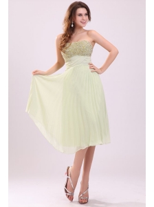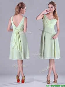 Lovely Tea Length Ruched and Belted Bridesmaid Dress in Yellow Green