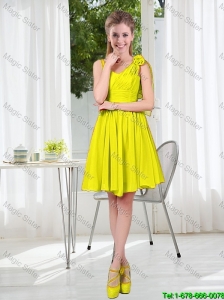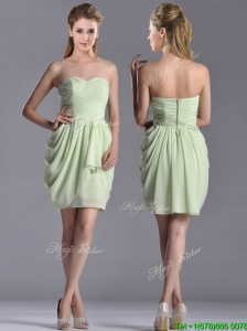 Popular Ruched Decorated Bodice Short Bridesmaid Dress in Yellow Green