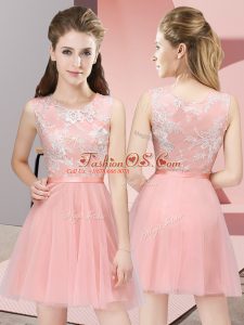 Tulle Sleeveless Knee Length Bridesmaid Gown and Appliques