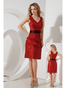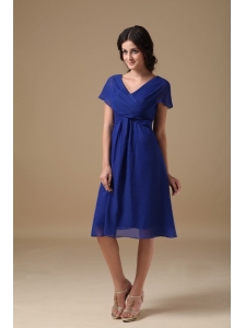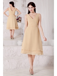 Popular Turquiose Blue Empire V-neck Bridesmaid Dress Chiffon Sash Tea-length