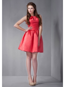Coral Red Empire Straps Mini-length Chiffon Bridesmaid Dress