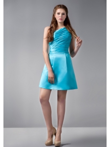 Aqua Blue Empire Strapless Bridesmaid Dress Chiffon Sash Knee-length