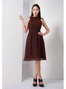 Custom Made Brown Column Strapless Bridesmaid Dress Ruch Mini-length Satin