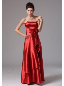 Lovely Orange Red Bridesmaid Dress For 2013 Bowknot On Taffeta Beaded Decorate Bust