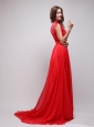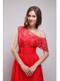 Bright Red Empire Asymmetricalr Chiffon Prom / Evening Dress with Appliques
