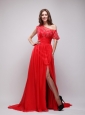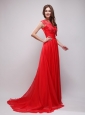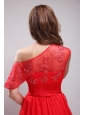 Home >  Prom Dresses >  Best Prom Dresses > Bright Red Empire Asymmetricalr Chiffon Prom / Evening Dress with Appliques