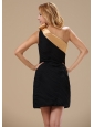 Home >  Special Occasion Dresses >  Little Black Dresses > Brighton Beaded Decorate One Shoulder Mini-length Black and Gold Ruched Decorate Bodice Chiffon 2013 Little Black Dress
