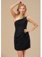 Brighton Beaded Decorate One Shoulder Mini-length Black and Gold Ruched Decorate Bodice Chiffon 2013 Little Black Dress