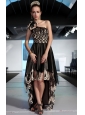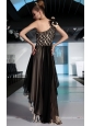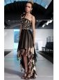 Home >  Prom Dresses >  Discount Prom Dresses > Brown A-line One Shoulder High-low Organza Hand Made Flowers Prom Dress