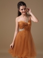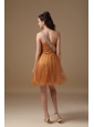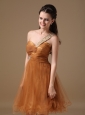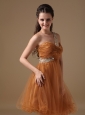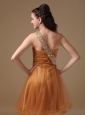 Home >  Prom Dresses >  Short Prom Dresses > Brown A-line One Shoulder Mini-length Organza Beading Prom Dress