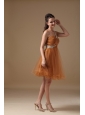 Brown A-line One Shoulder Mini-length Organza Beading Prom Dress