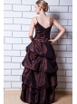 Simple but gorgeous! This burgandy gown has two spaghetti straps, lovely beadwork and exquisite ruchings. The glamorous skirt with pleats flows freely to the floor to creat a beautiful shape. A hidden zipper up in the back complets this unique design. Wearing this dress, you will illuminate the whole party.
