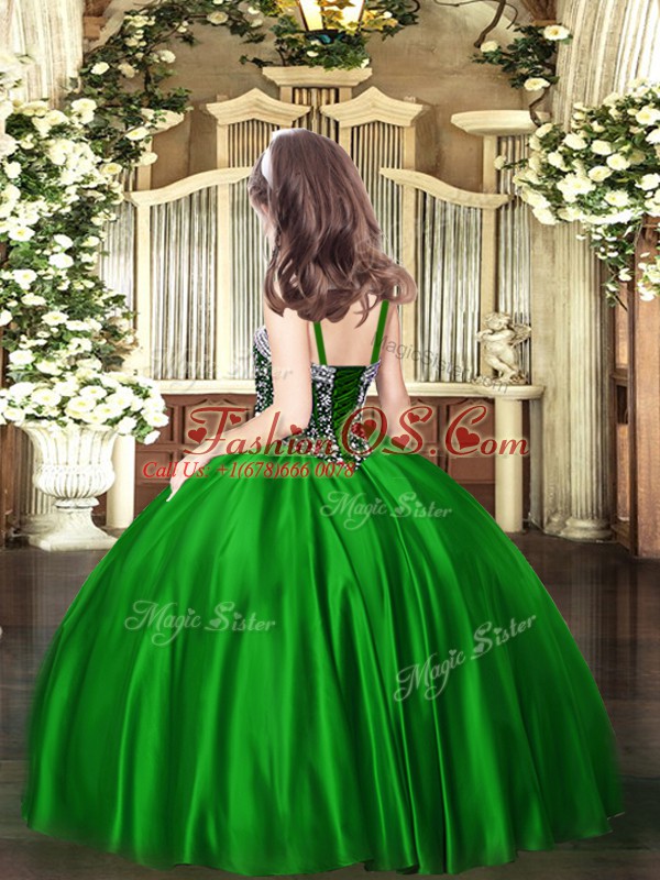 Brown Ball Gowns Beading Pageant Gowns For Girls Lace Up Satin Sleeveless Floor Length