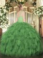 Brown Ball Gowns Organza Straps Sleeveless Beading and Ruffles Floor Length Zipper 15 Quinceanera Dress