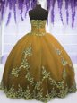 Home >  Quinceanera Dresses >  Pretty Quinceanera Dresses > Brown Ball Gowns Tulle Strapless Sleeveless Appliques Floor Length Zipper Sweet 16 Quinceanera Dress