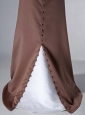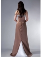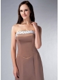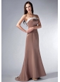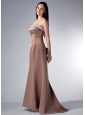 Brown Cloumn Strapless Bridesmaid Dress Satin Beading Rush Train