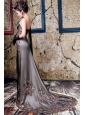 Home >  Special Occasion Dresses >  Celebrity Dresses > Brown Column Appliques Prom / Evening Dress With Court Train