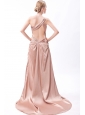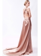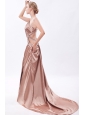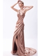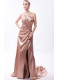 Brown Column One Shoulder Prom Dress Taffeta Beading Court Train