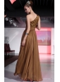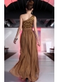 Home >  Prom Dresses >  Discount Prom Dresses > Brown Column / Sheath One Shoulder Floor-length Chiffon Beading Prom Dress