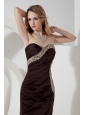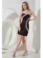 Brown Column / Sheath Sweetheart Beading Short Prom Dress Mini-length Satin