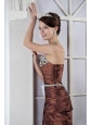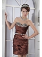 Brown Column / Sheath Sweetheart Mini-length Taffeta Beading Prom Dress