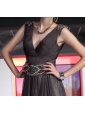 Make like a Greek goddess in this eye-catching gown.Its plunging V-neckline encrusted by an extra wide beaded and jeweled band. beadin on shoulders highlight this design.The floor-length skirt features soft pleats which give rise to a graceful effect.A very elegant design that is sure to leave a lasting impression wherever you wear it.
