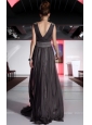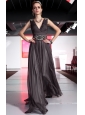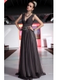 Home >  Prom Dresses >  Discount Prom Dresses > Brown Column / Sheath V-neck Brush Train Chiffon Beading Prom / Evening Dress