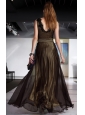 Home >  Prom Dresses >  Discount Prom Dresses > Brown Column / Sheath V-neck Floor-length Chiffon Beading Prom Dress